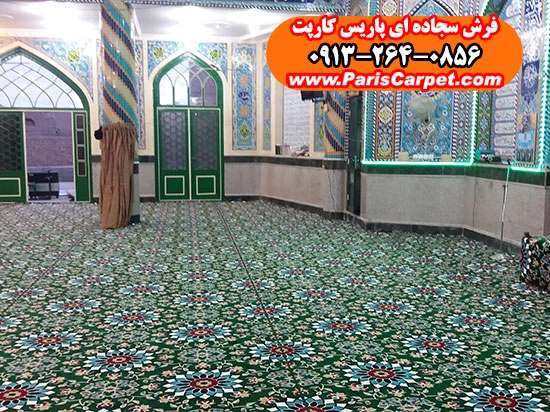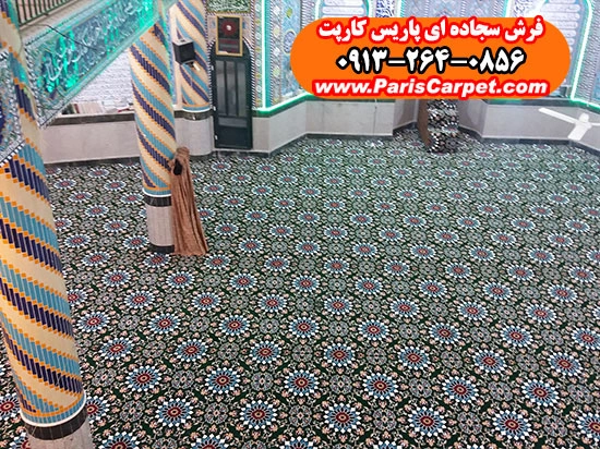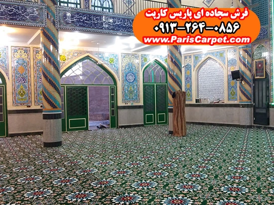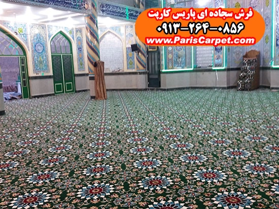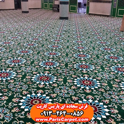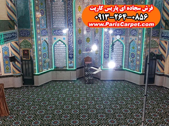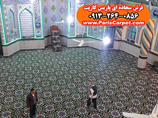 اصول حرفهای نصب سجاده فرش یکپارچه طرح کاشیکاری سبز در فضای مسجد